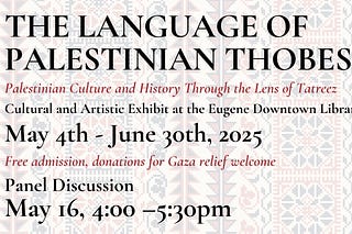 Call to action to reinstate PSU FSJP member Dr. Nic + Palestine Exhibit at Eugene Library opens May 4th!