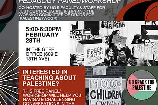 Join us 2/28 pedagogy panel and workshop for UO instructors and 3/11 for a screening of the new film The Palestine Exception