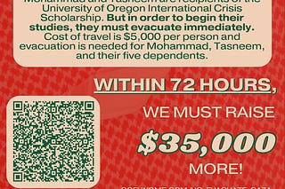 Help us raise $35,000 in urgently needed funds to evacuate Mohammad, Tasneem and their their five loved ones from Gaza to continue their studies at the…